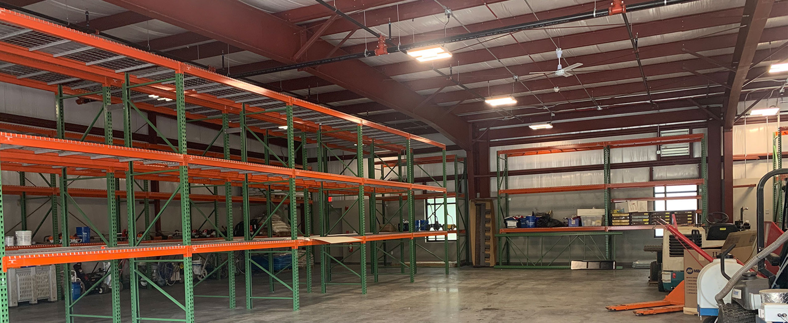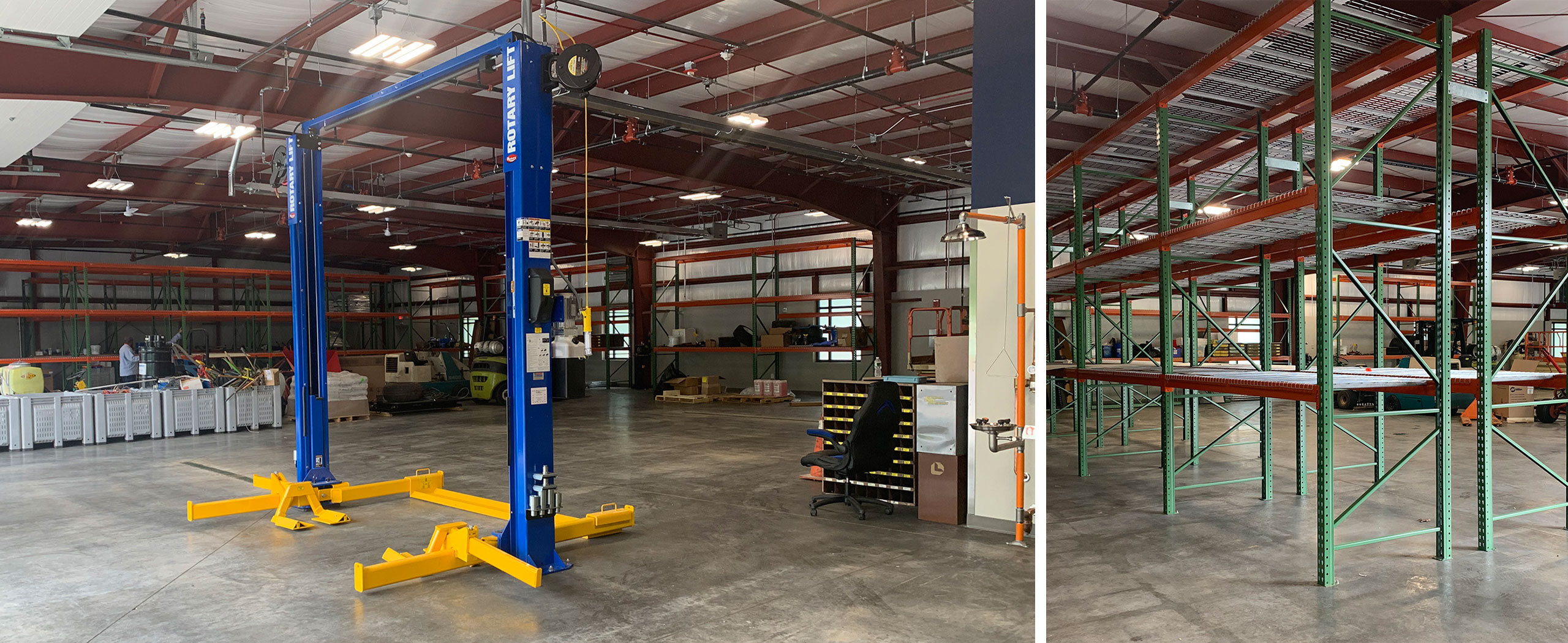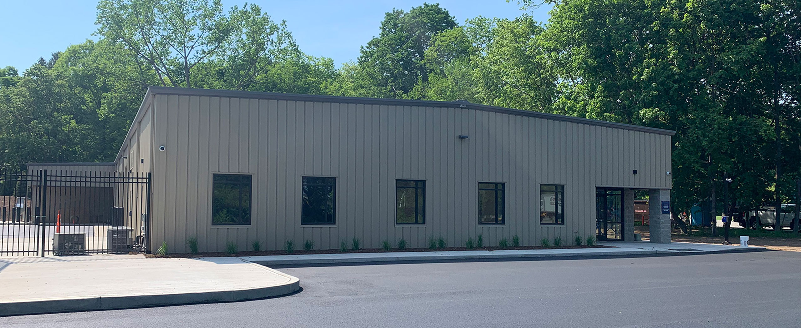 We remained the eyes and ears on the site throughout and posted updates on progress 2-3 times a week to keep all stakeholders in the loop on progress. Completed on schedule in June ’21, the new building includes a warehouse/work-bay area that has a hydraulic lift, industrial shelving/rack system, and a work bench area with compress air connections. New offices, a lunchroom, and locker rooms are also contained within. Site work was comprised of an asphalt paved driveway and parking lot, security gate, fencing, storage bays for earth materials, and an above-ground gas tank.